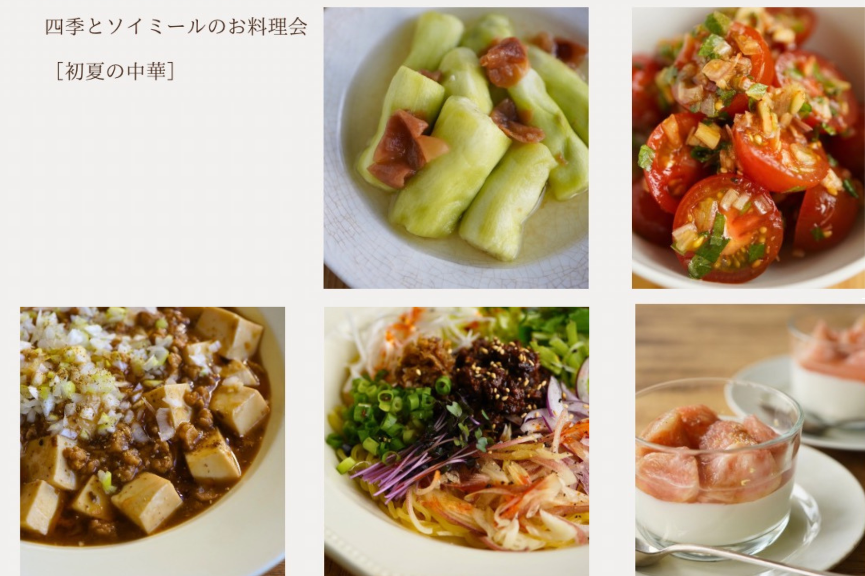 四季とソイミールの お料理会 6/1(月) 11:00-13:30 / 15:00-17:30