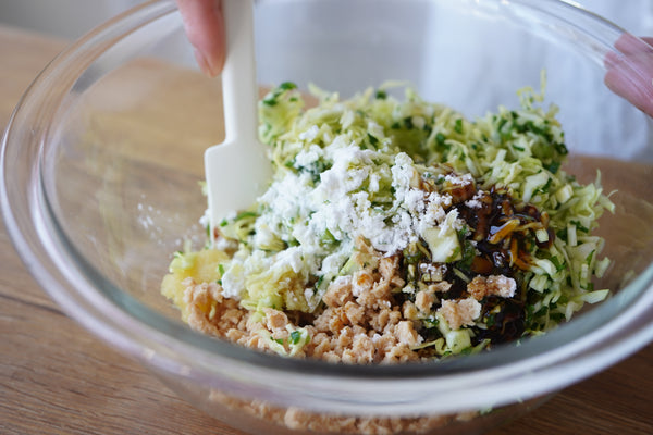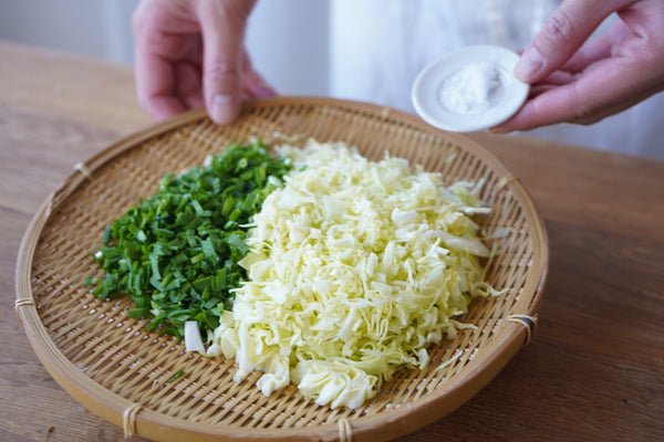 【ポイント】 ・野菜を塩もみすることでソイミールと合わせた時に一体感が出て包みやすい。 ・片栗粉やオイスターソースを入れることで少しとろみがついてよりまとまりやすい。 ・そのままでも味がついてるので美味しく食べられる。味変にさっぱりとした酢こしょうにつけるのがおすすめ。 ・普通サイズの餃子の皮だと20枚程度できる。