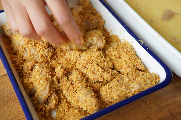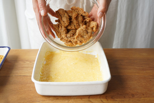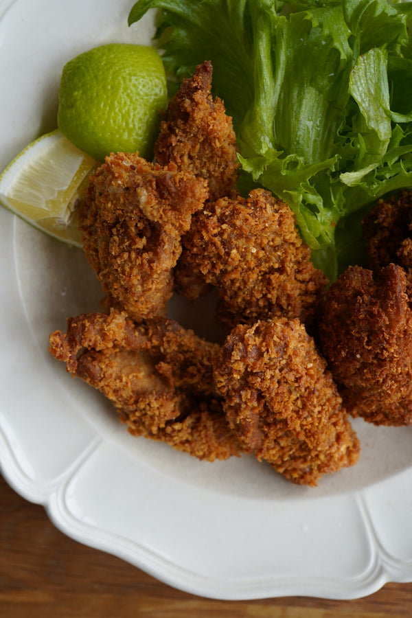 【ポイント】 ・ソイミールパウダーを使うことでざくざく食感の衣に。 ・仕上げのスパイスチリサマーでやみつき味に。 ・クリスマスチキンやおもてなしにもおすすめ。 ・ソイミールは、脂質が少なくたんぱく質が豊富。食物繊維も含まれるため、お肉の唐揚げに比べて軽やかな仕上がりなのに“満腹感”はしっかりあります。