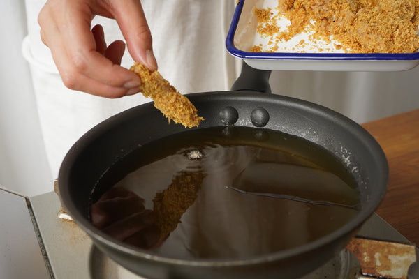 ⑤ フライパンに揚げ油を温め、③を揚げる。