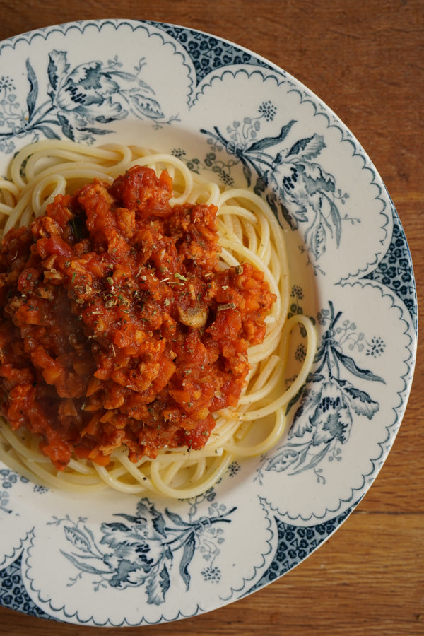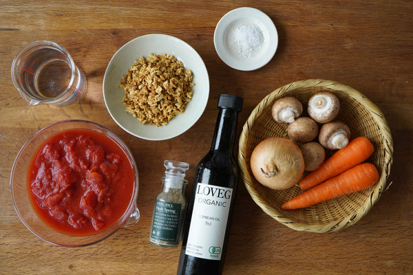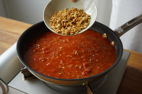 ・基本のソイミートソースは、植物性たんぱく質・食物繊維・ビタミン類をバランスよくとれる身体にやさしい一品です。