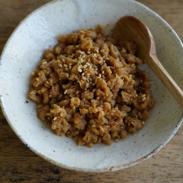 圧搾搾油製法で脱脂した有機脱脂大豆粉を原料に有機JAS認定自社工場「RURAL(ルーラル)」で製造。
